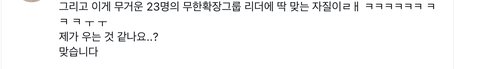 ㅅㅂ 나 우냐..? 23명의 무한확장 그룹의 리더에 딱 맞는 자질이래...