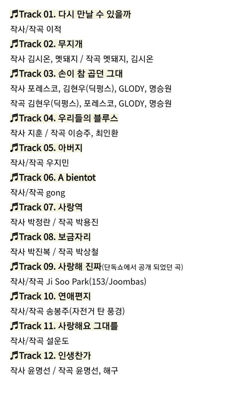 트랙 리스트 나왔는데 첫번째 트랙이 이적이네ㅋ