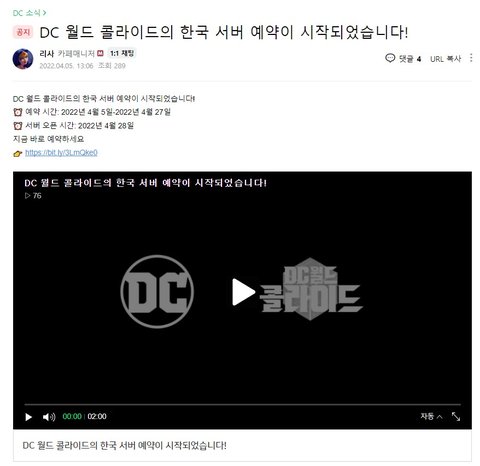 DC월드콜라이드라고 28일에 한국서버 열린다길래