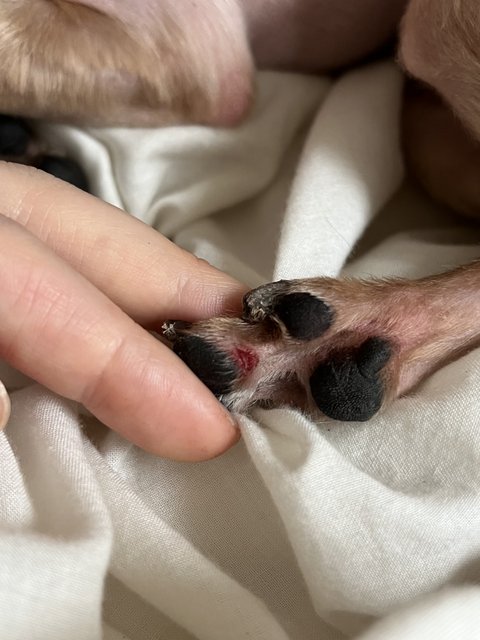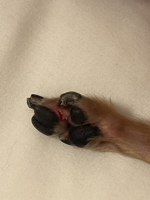 귀가길에 목줄이 없어서 오분정도 잠깐 내려놨다가 집에 들어와 물로 발을 씻기고 수건으로 닦는데 피가 묻길래
