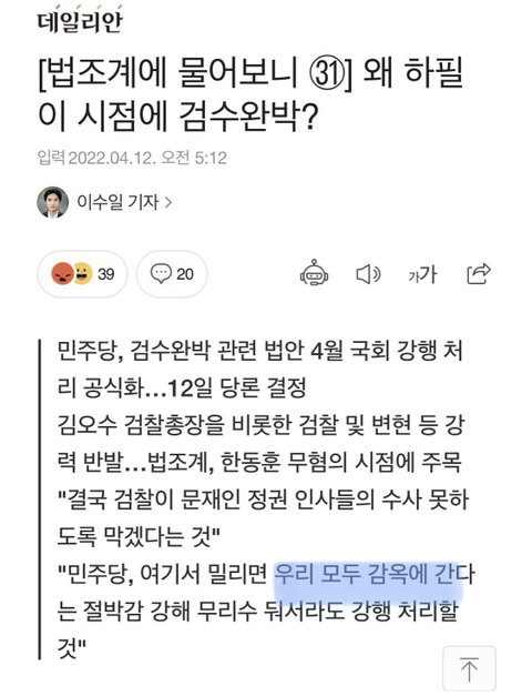 검수완박 완전 찬성!! 갈라치기 할 땐 언제고, 이제와서 여자들을 위해서 검수완박 반대한다고?? 진짜 언론플레이오져.