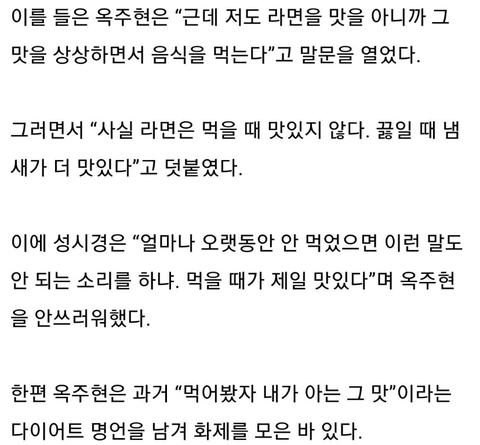 라면을 먹을 때 보다 끓이는 냄새가 더 맛있다는 옥주현