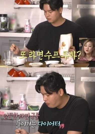 라면수프 국물 마시는