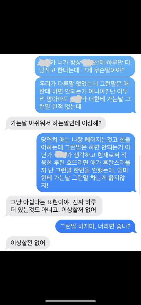 그래서 너무 기가막혀서 그럼 한시간 울은건 안울은게 되냐. 애가 니집가서 괜찮은건 살아야하니 포기하고 적응하는거지 라고 했더니.