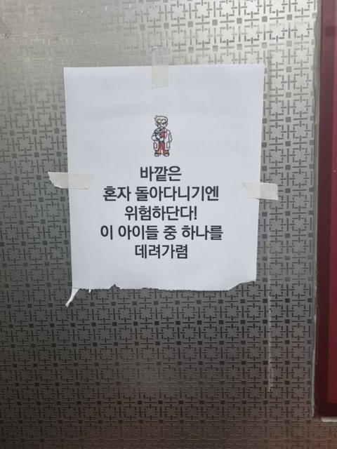 저거 사람들이 하나씩 다 뜯어가고 없는게 젤웃김 ㅋㅋ