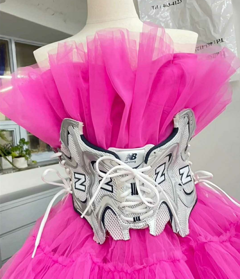 는 운동화를 박박 뜯어만든 리폼 의상이거 처음에 저거 뭐냐고 반응 별로였었지 않니.....