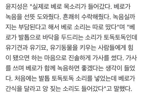 윤지성의 부탁에 흔쾌히 수락해서 녹음까지 해준 착한 베로ㅋㅋㅋㅋㅋ