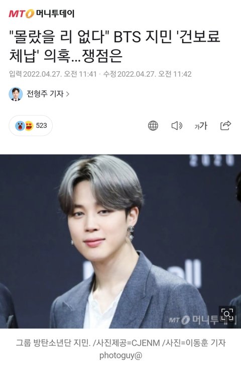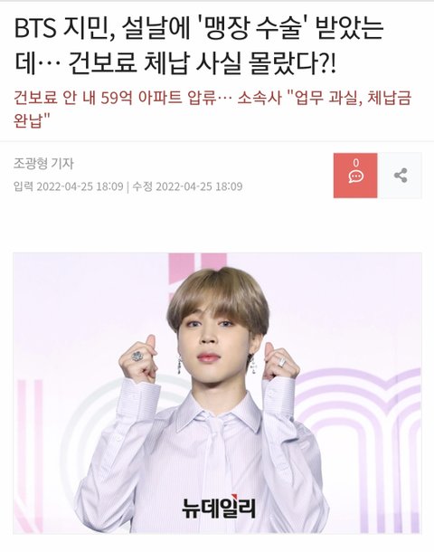 근데 진짜 억지 부리나....나 팬아닌데 이런 억지 보니까 참 대단하다 베플처럼 건보료는 세금포탈 탈세랑 완전히 결이 다른거야 건보료는 한국에 살면서 안낼수가 없어 어쨌든 결국은 내야 하는 돈이고 체납하면 다 완납을 하면 그만이야 휴대폰 요금 체납 아파트관리비 체납이랑 결이 비슷하고... 세금은 탈세할 경우 안걸리면 그냥 평생 탈세하는거고 재수 없어서 걸리면 탈세범이 되는거고 세금은 악의적으로 탈루하려고 안내는거고 건보료는 그럴수가 없어 걍 까먹고 못내는거야 어휴 ㄷㅅ들아 뭘 좀 알고 억지를 써야지
