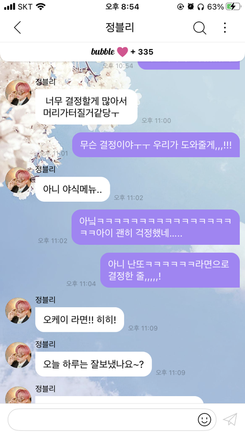 고민있다는 발언에 즈니들 걱정의 답장 보냈는데
