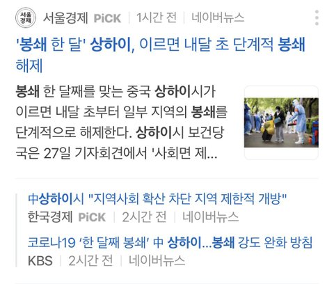 상하이 봉쇄. ㅜㅜㅜㅜ풀린대