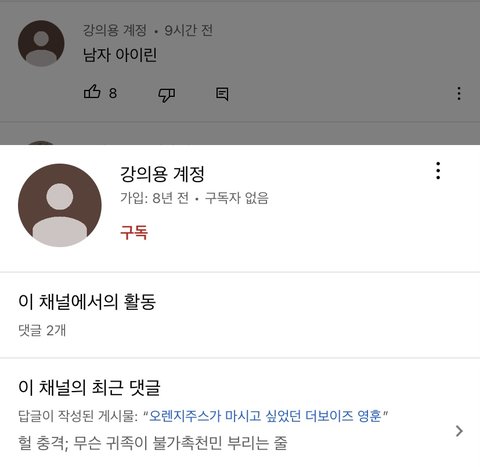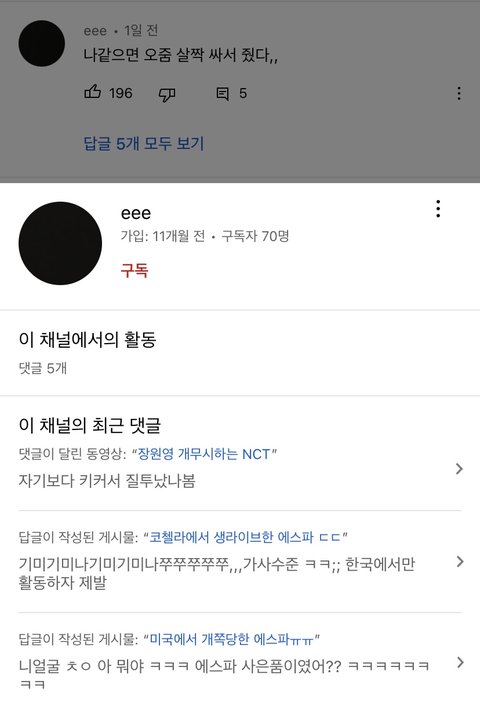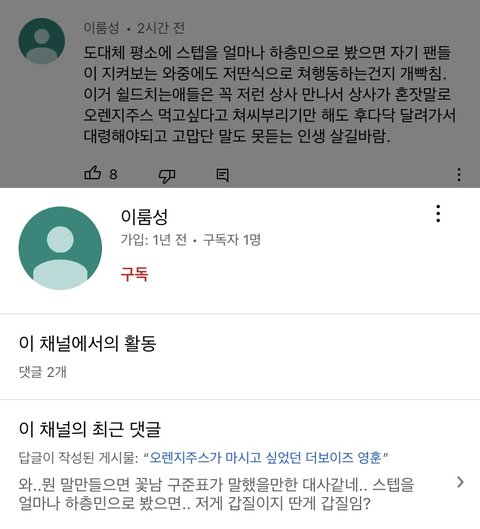 지금까지 단 댓글 달랑2개인데 2개다 영훈이 악플이거나 이런식이야(악플달려고 일부러 부계로 들어와서 욕하는거같음)