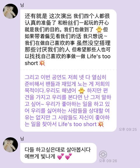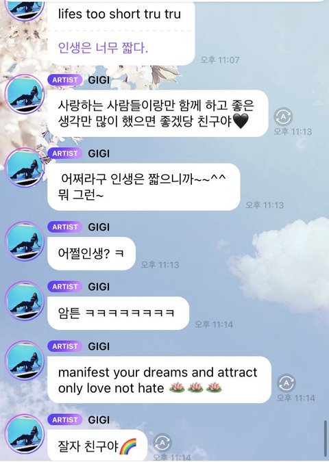 근데 닝닝 지젤 말투가 상황에 좀 안맞긴함ㅋㅋ아니 죽쒀놓고 헤이터 어쩌구 저쩌구..받아들이고 고칠생각은 해야지ㅋㅋㅋ