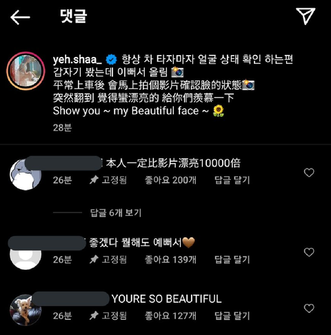 본인 예쁘다는 댓글 3개국어로 고정시켜 놓음ㅋㅋㅋㅋㅋㅋ