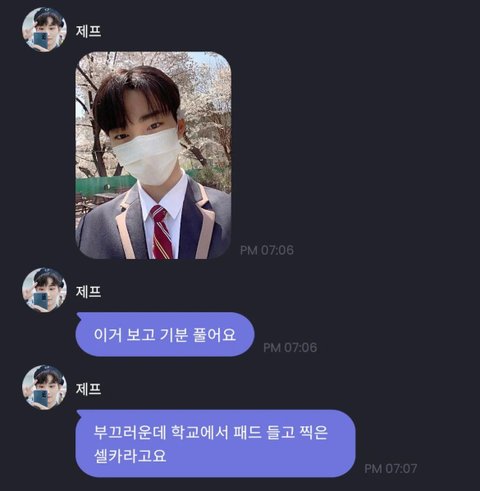 학교에서 셀카 찍어서 보내줌