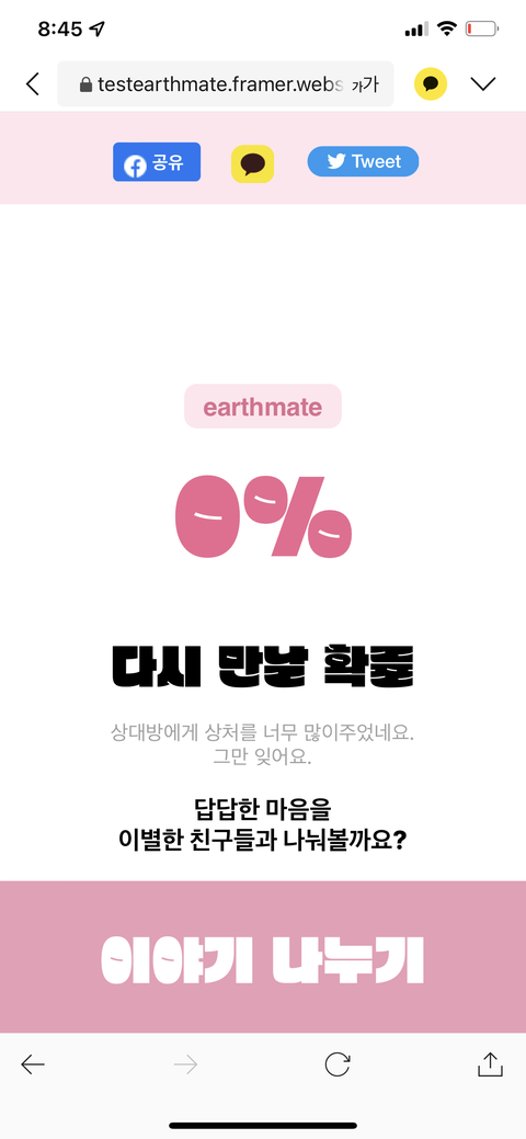 재회각을 재봅시다...나 0퍼 나왔어... 다시해도 3퍼가 최고네..?아무래도 헤어지자에 내가 말했다고 선택해서 그런가.