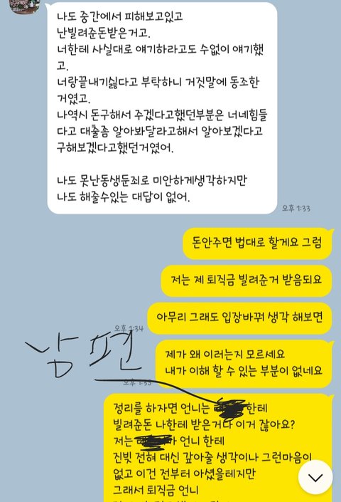 ㅇㅇ이(남편)가 나한테 빌린돈 니 퇴직금으로