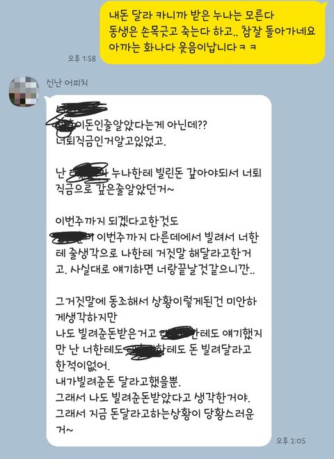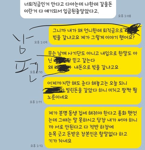 너 퇴직금인거 알아~ 근데 ㅇㅇ이가 나한테 갚을 돈이었어