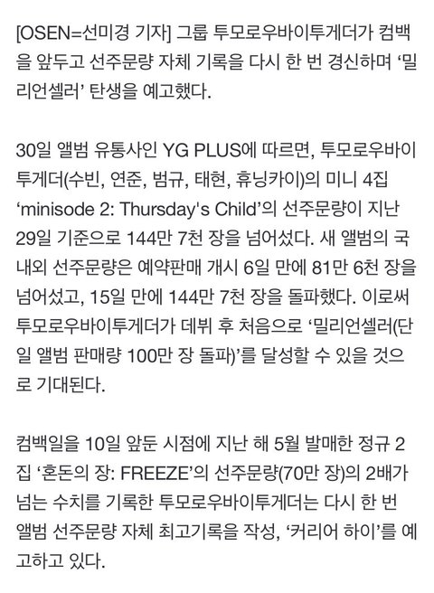 투바투 선주문 10일만에 60만장은 늘어남