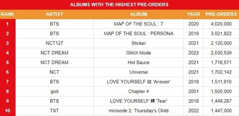 앨범 판매 탑 10