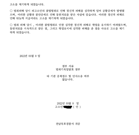 가해자들의 불법행위를 39~40번 넘게 고소고발을 하며 수사기관에 피해사실을
