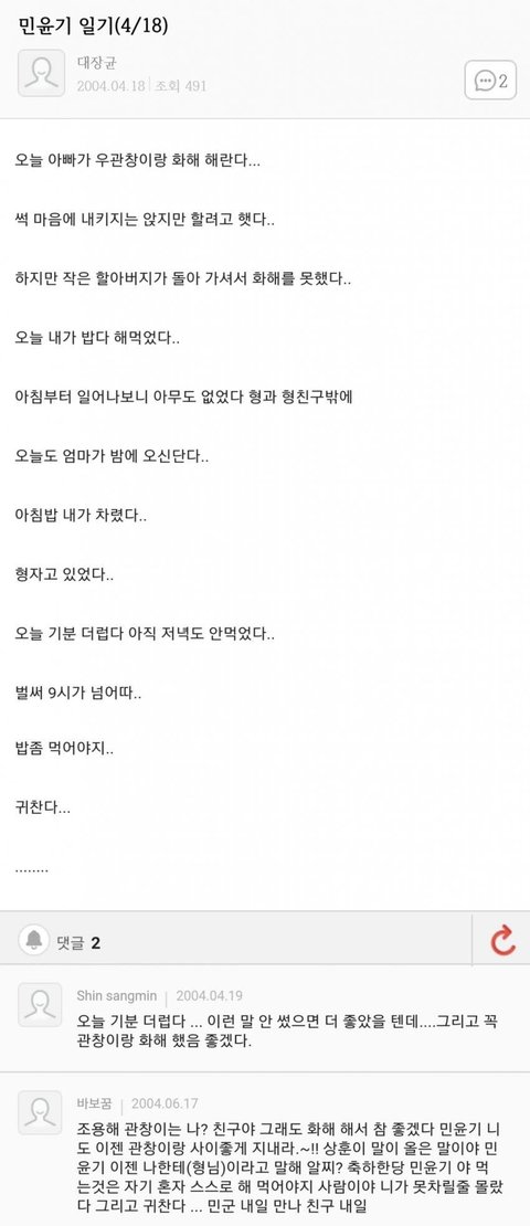 슈가 초딩 때 쓴거래 ㅋㅋ 닉이 대장균