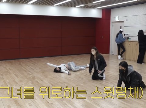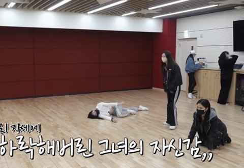 멤버들은 같이 몸풀고 있는데