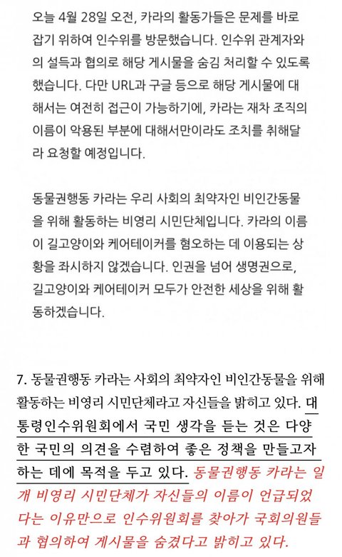 카라 주장대로 일개 시민단체가 뭔데 인수위원회 찾아가서 게시물 삭제를 요구함?정책을 판단하는건 인수위원회가 결정할 몫임