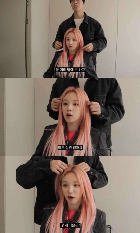 실제 머리는 염색 너무 자주해서 엄청 푸석하고 다 끊기고 그런다는 듯...