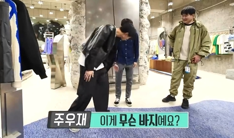 조심스럽게 바지에 대해 묻는 주우재