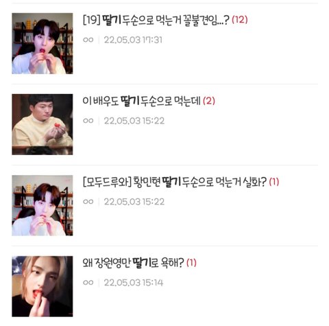 저 분들 말고도 딸기 두손으로 먹은 아이돌들 몇몇 있음 근데 장원영한테만 개 ㅈㄹ한거임 장원영이 잼민이들 ╋ 인스타 애엄마들한테 타깃 돼서 그런지 자꾸 장원영한테 여우짓 프레임 씌우려는 안티들 붙어서 그럼 ㅋㅋ 그냥 무시해 판에 굳이 끌올할것두 없음