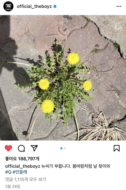 차니 ost 나왔을때도 민들레 사진 올려줬네