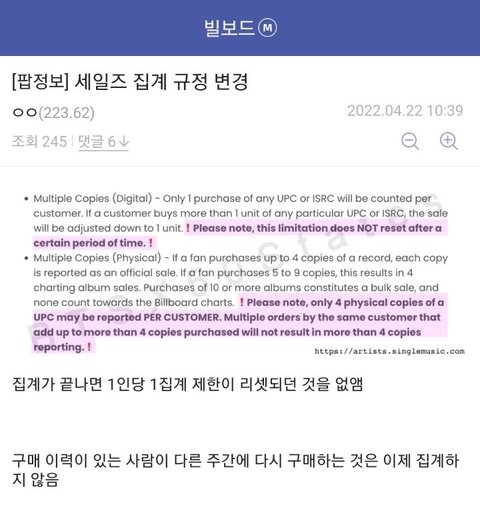 버블링에도 못들었음 설마? 빌보드 세일즈랑 스밍 수치 낮다고 하던데 그래서임? 빌보드 개편은 1월 이후 바뀐거 없는데 왜 자꾸 개편됐다는거임