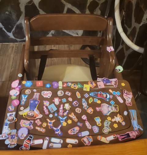 식당의자에 스티커놀이 할 수 있다쳐요!!!