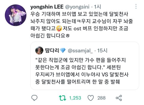 헐...이ㅇ신 성우님이 우지 브ㅇ앱 보셨나봐