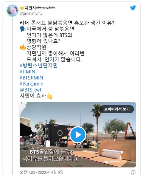 >코리아프론트맨 지민이 먹어서 불닭볶음면이 해외에서 잘팔린다고 제보 기사를 냄 근거는 매우 부족함 근데 일단 기사나면 방탄이니까 파생기사들 쏟아지고 해외매체에도 기사가 남 그럼 그 해외기사를 역수입해서 해외 어느 매체서 지민땜에 잘팔린다더라 기사가 나고 다시 파생기사들 쏟아짐 그럼 이제 그건 무조건 팩트가 되는거임 거기에 토달면 악개됨ㅎㅎ 사실상 불닭은 방탄 다른 멤버들이 더 자주 먹는걸 본 거 같은데 불닭도 비비고 만두도 걍 지민이랑 조금만 엮이면 다 지민이덕분에 잘팔리는게 됨<