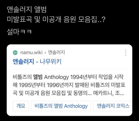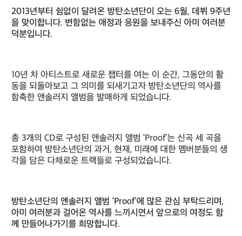 앤솔러지 라고 하고 베스트라 읽음ㅋㅋㅋㅋ 온갖 팔이 다 하고 2년 만에 내는 게 신곡 3개에 얼렁뚱땅 설명 성의 없는 베스트 앨범이라니 아미들 호구 잡히는 거 노골적이네 미쳤다 ㅋㅋㅋㅋ