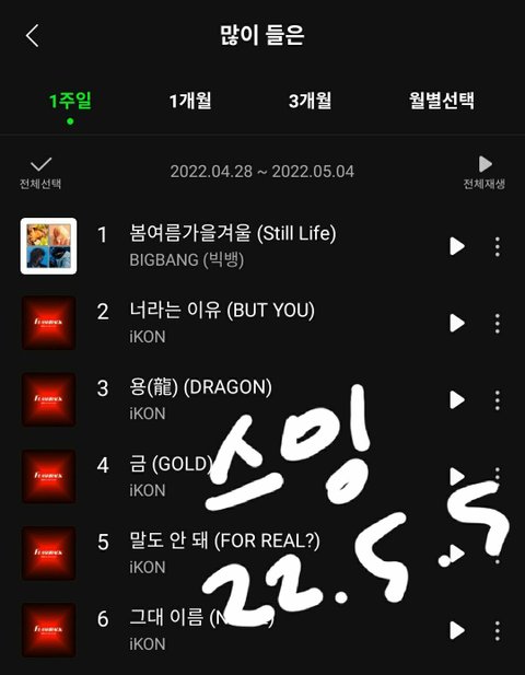 윗집에서 인증다녀갑니다 아이코닉들 행복하자 근데 진짜 스밍때문에 억지로 듣는게 아니라 수록곡 다 노래 진짜 좋아 용 대박이다 진짜 흥하자 아이콘!!
