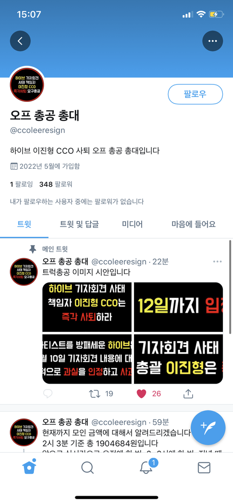 저기서 모금된 금액도 공지해주는 거 같아!