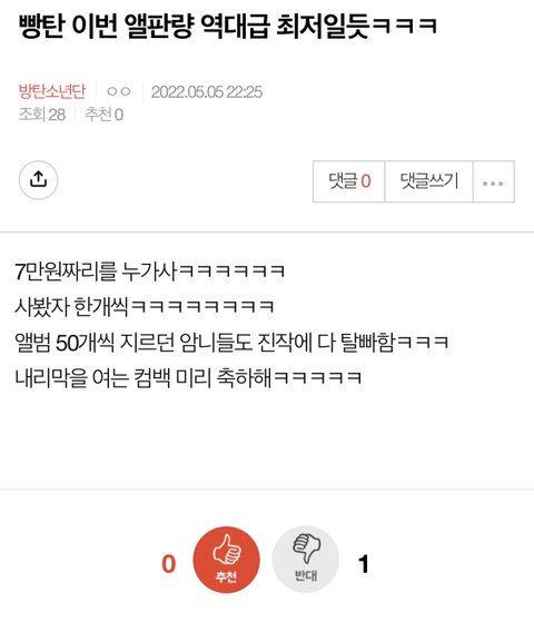 빵탄 이번 앨판량 역대급 최저일듯ㅋㅋㅋ