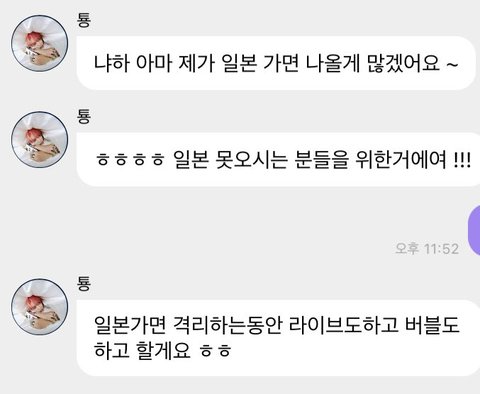 마지막 버블 받고 좀 눈물남.. 아니 왜 얘가 몇년간 주는 사랑이 이렇게 변함없이 달달한 거임 ㅜㅜ 평생 사랑할게 진짜..
