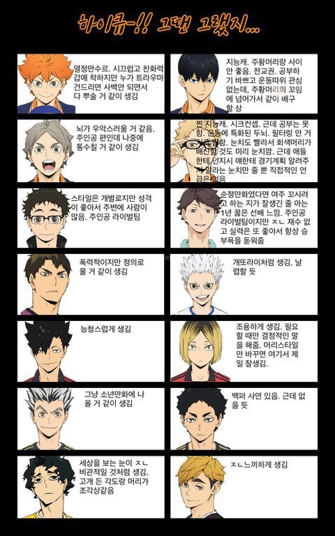 나 하이큐 보기 전에 이런 캐해 했었는데