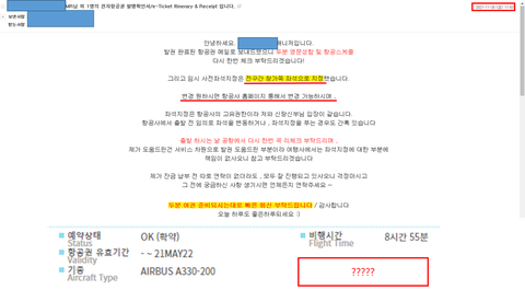 전자항공권을 확인하였으나.. 좌석번호가 나와있지 않았습니다.