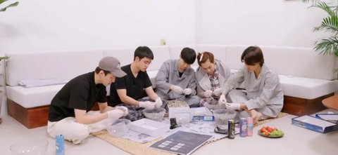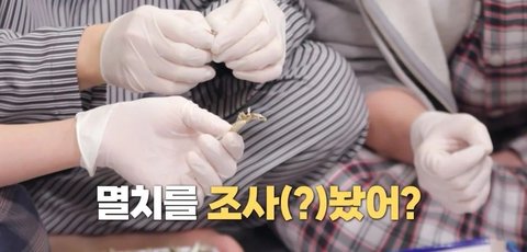 갑자기 제작진은 멤버들에게 멸치 똥 따기 알바를 시킵니다