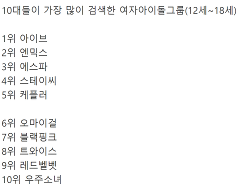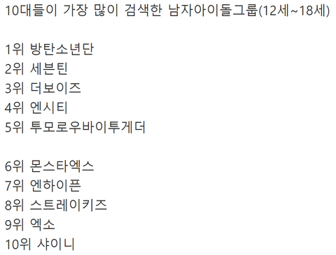 방탄소년단 세븐틴 엔시티 더보이즈 엑소 스키즈 투바투 몬스타엑스 엔하이픈 엑소 샤이니 블랙핑크 트와이스 레드벨벳 우주소녀 오마이걸 케플러 스테이씨 엔믹스 아이브 에스파