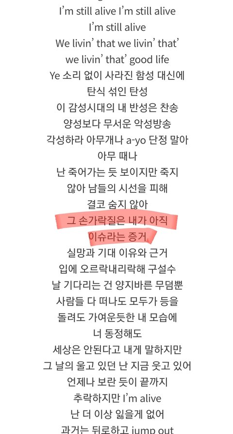 아래는 빅뱅 still alive 지디파트 가사 10년전 노래인데도 아직 통함 ㅋㅋ