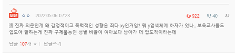-남혐하는 여자애였으면 남초 커뮤에서 ㅍㅁ라고 신상털고 박제했을 듯. 우린 그 정돈 아님.