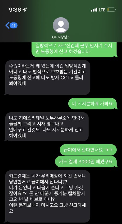 “그냥 오늘 내가 하고 사람 구할게. 요즘 하루하고 그만두는 놈들이 너무 많아” 이러더니 끊으셨습니다..