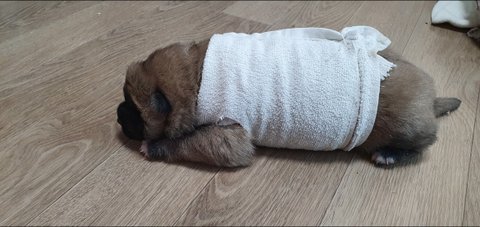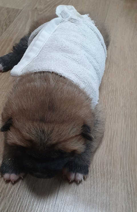 강아지 옷은 있을리 만무하고 어머니께서 수건으로 옷을 만들어 줬어요^^