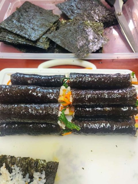 사먹어도되지만 김밥은 집김밥만에 매력이있으니 열심히 돌돌말아서~~ 연겨자소스만들어서 콕콕찍어먹으니 순신간에 60개 클리어 큰김밥보다 더 맛난듯