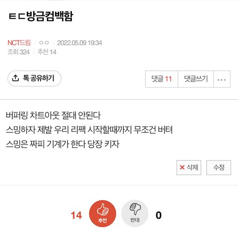 타돌 컴백하셔서 차트아웃될까봐 걱정돼서 글 올린거였어...